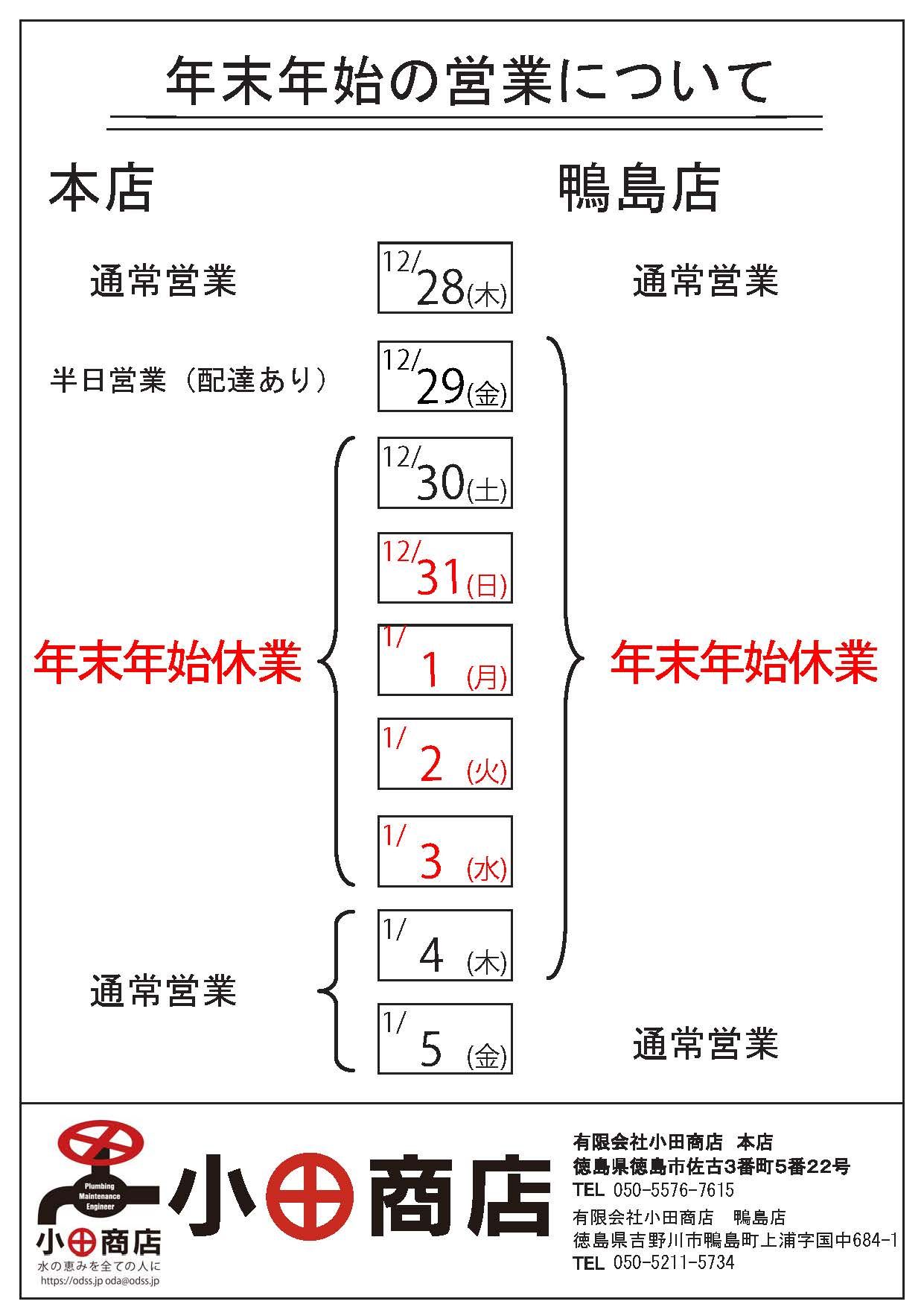 年末年始の営業時間につい