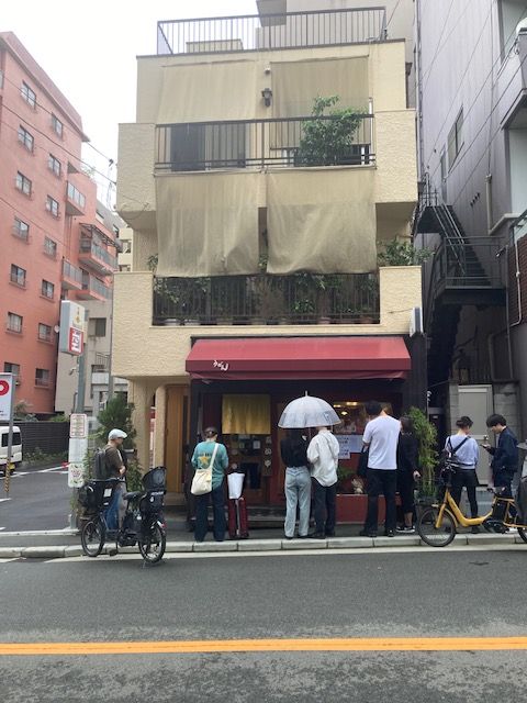 店頭で名前を書いて待つ方式です。外国の方も来ていました。