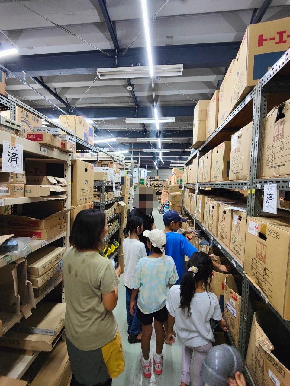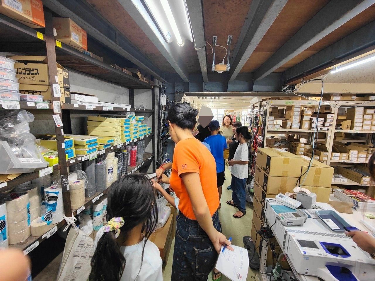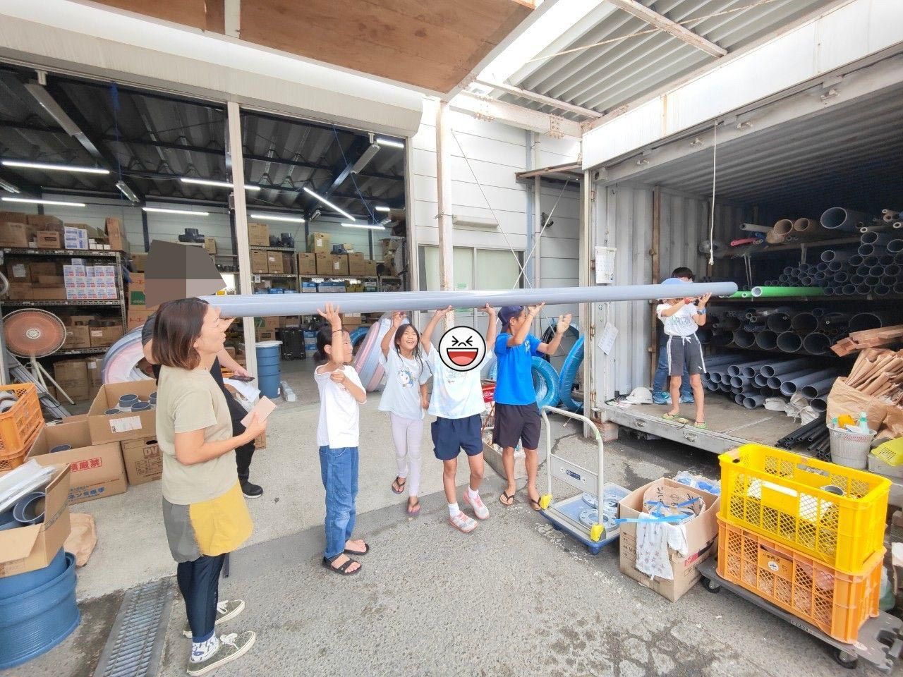小田商店には水道の部品がたくさんあることを簡単に話して、これから社内見学へ行ってもらい、今日は塩ビパイプで噴水を作ってもらうので、部品を取ってきてくださいとお願いしました。